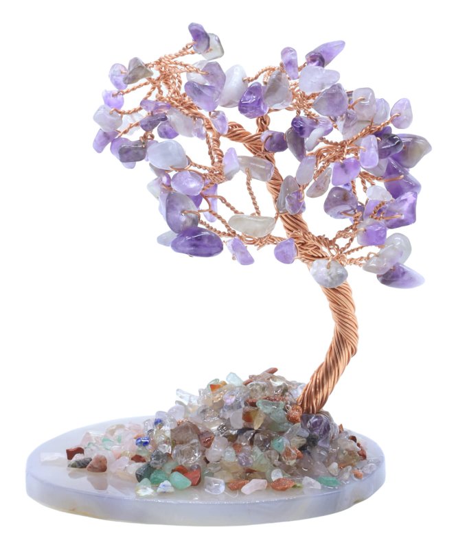 Arbre du Bonheur Améthyste sur Tranche Agate 12cm