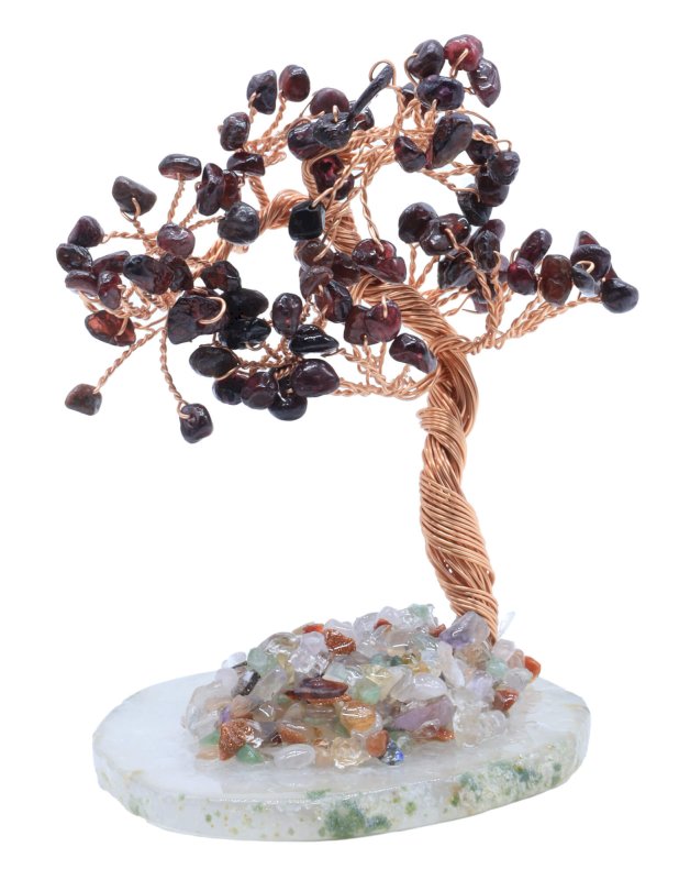 Arbre du Bonheur Grenat sur Tranche Agate 12cm