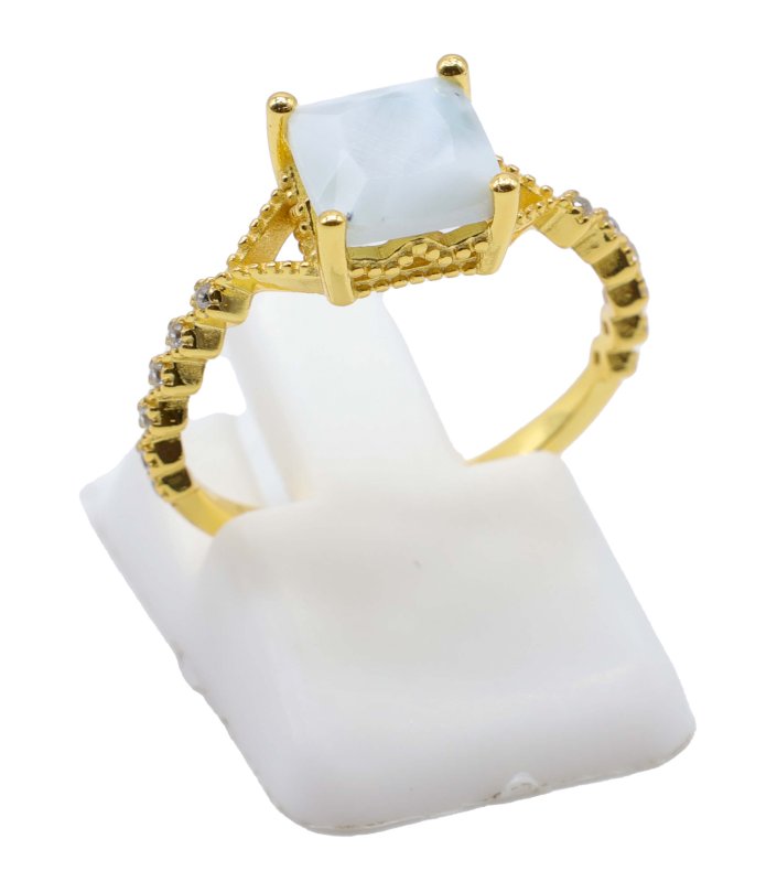 Bague en Argent 925 plaquée Or sertie d'une pierre de Larimar qualité extra.