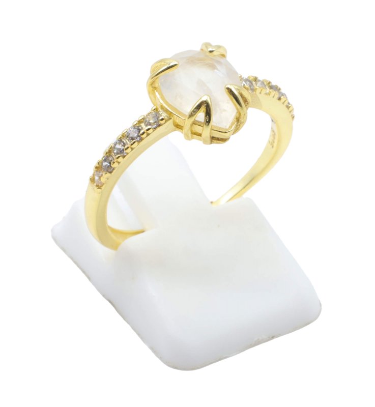 Bague en Argent 925 plaquée Or sertie d'une Pierre de Lune qualité extra.
