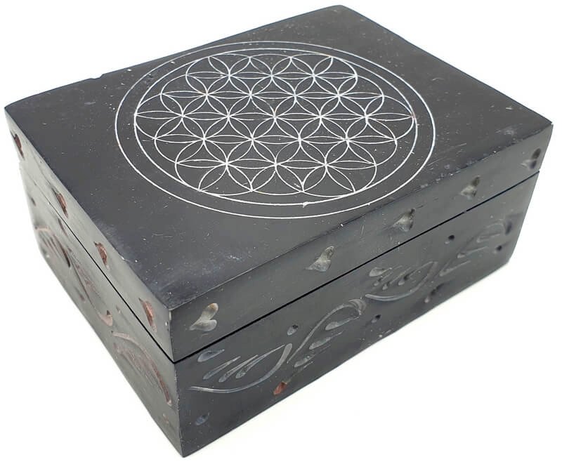 Boîte à Bijoux Pierre Rectangle Fleur de Vie 10cm