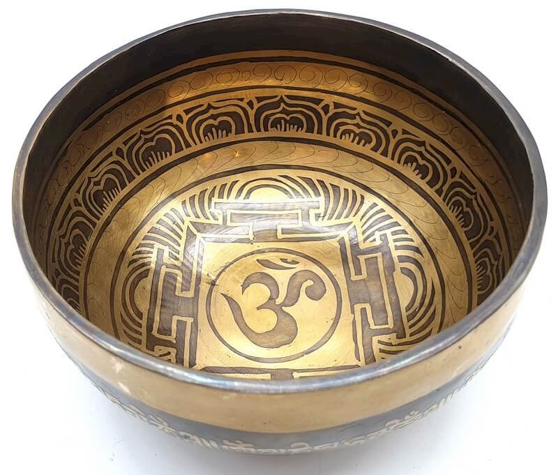 Bol chantant tibétain gravé pour méditation samadhi. Nos bols chantants sont en 98% de bronze pur et 2% d'alliage de métaux (Fer, Métal, Aluminium...) pour en améliorer la sonorité.