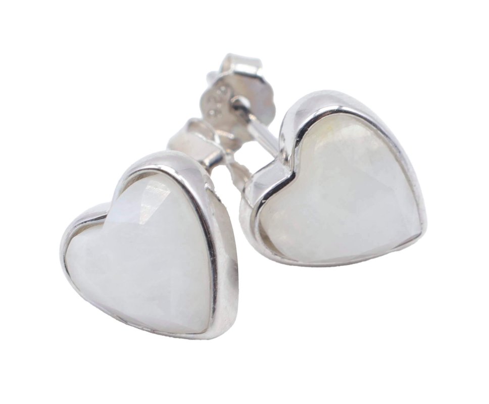 Boucles d'oreilles Argent 925 Pierre de Lune Coeur