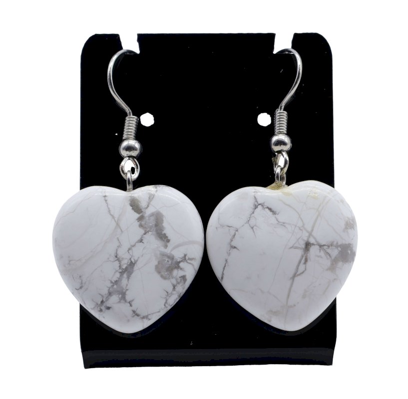 Boucles d'oreilles Coeur Howlite 4cm