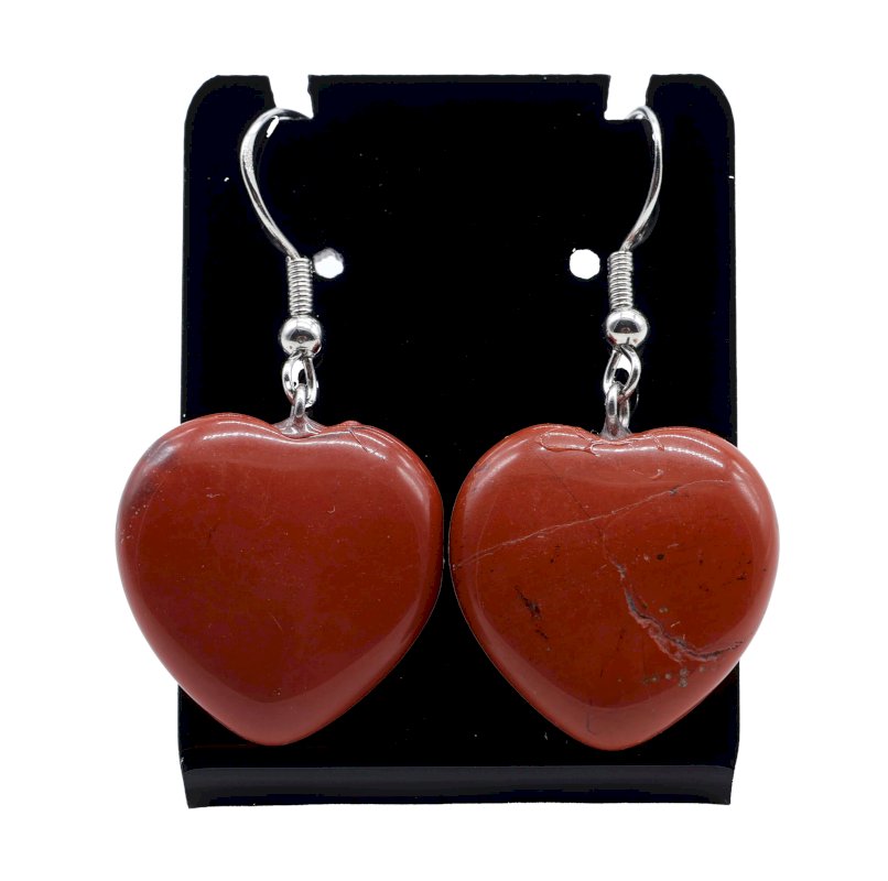 Boucles d'oreilles Coeur Jaspe Rouge 4cm