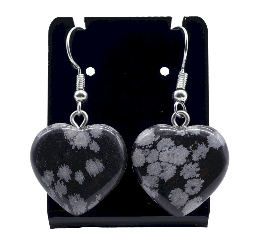 Boucles d'oreilles Coeur Obsidienne Neige 4cm