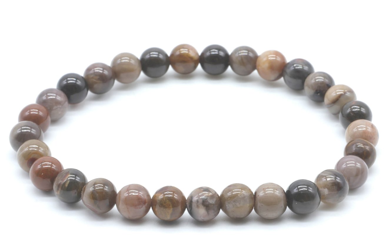 Bracelet Agate Fossile perles 6mm