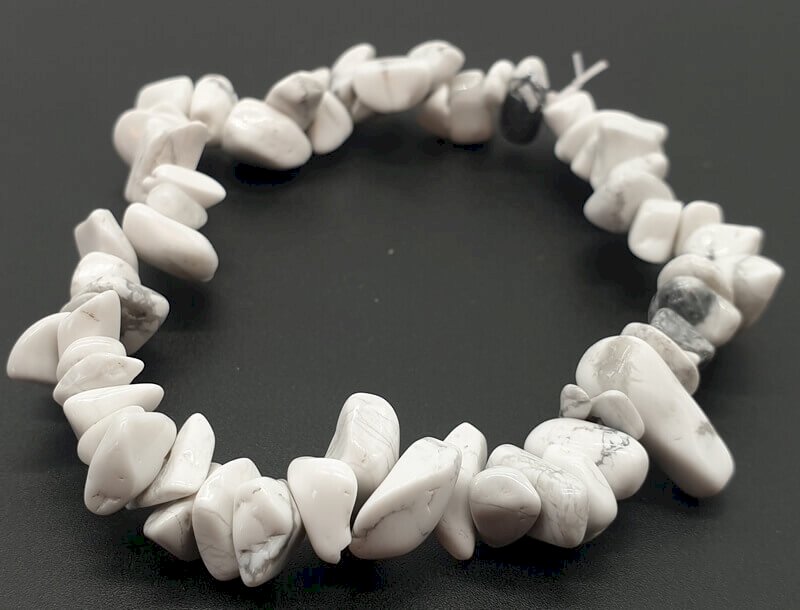 Bracelet élastique en éclats de pierres de Howlite Blanche. Taille universelle.