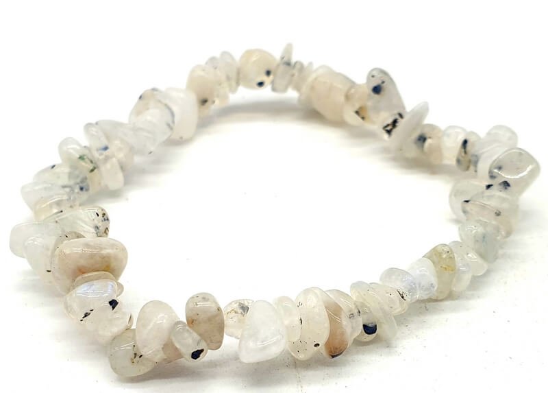Bracelet élastique en éclats de pierres de Labradorite Blanche. Taille universelle.