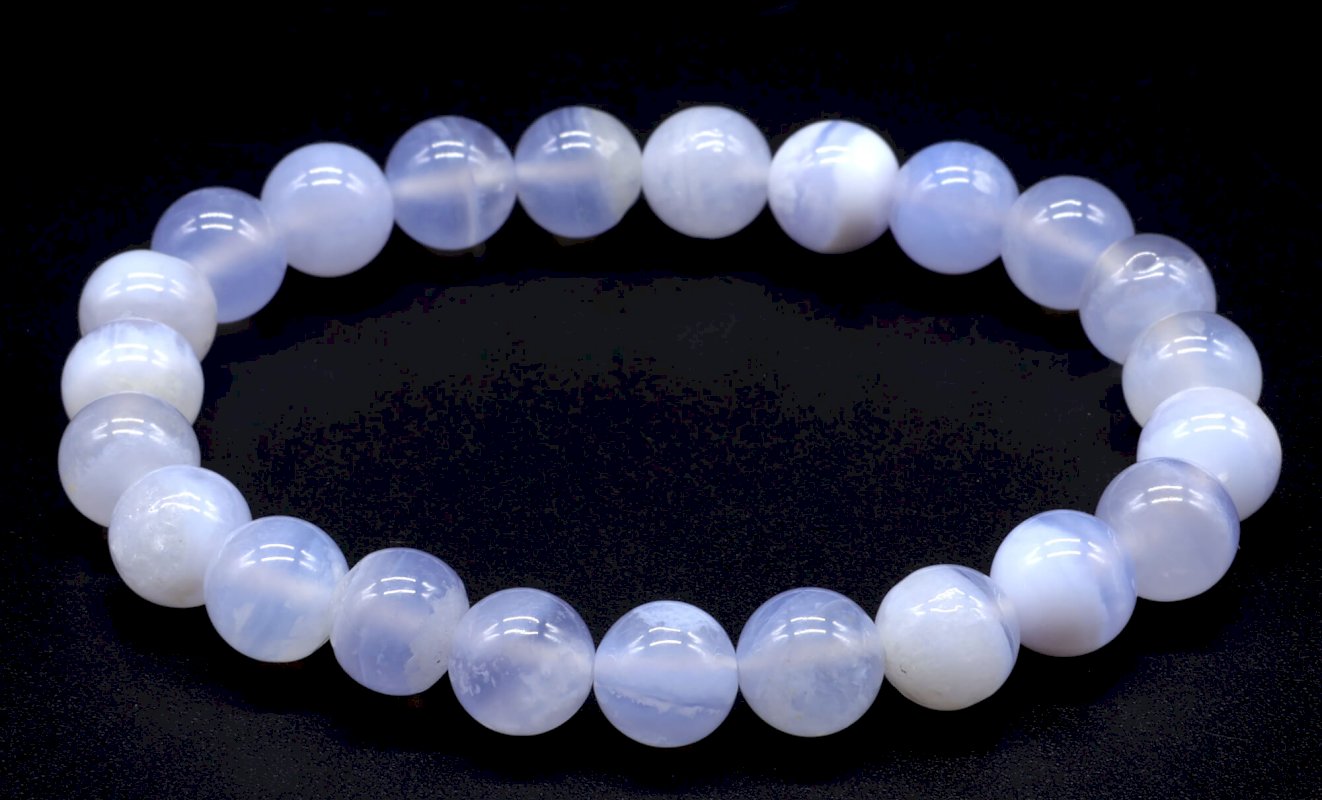Bracelet Calcédoine Bleue 'AA' perles 8mm