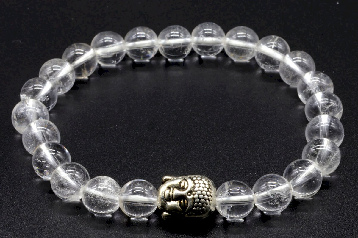 Bracelet Cristal de Roche & Bouddha perles 8mm