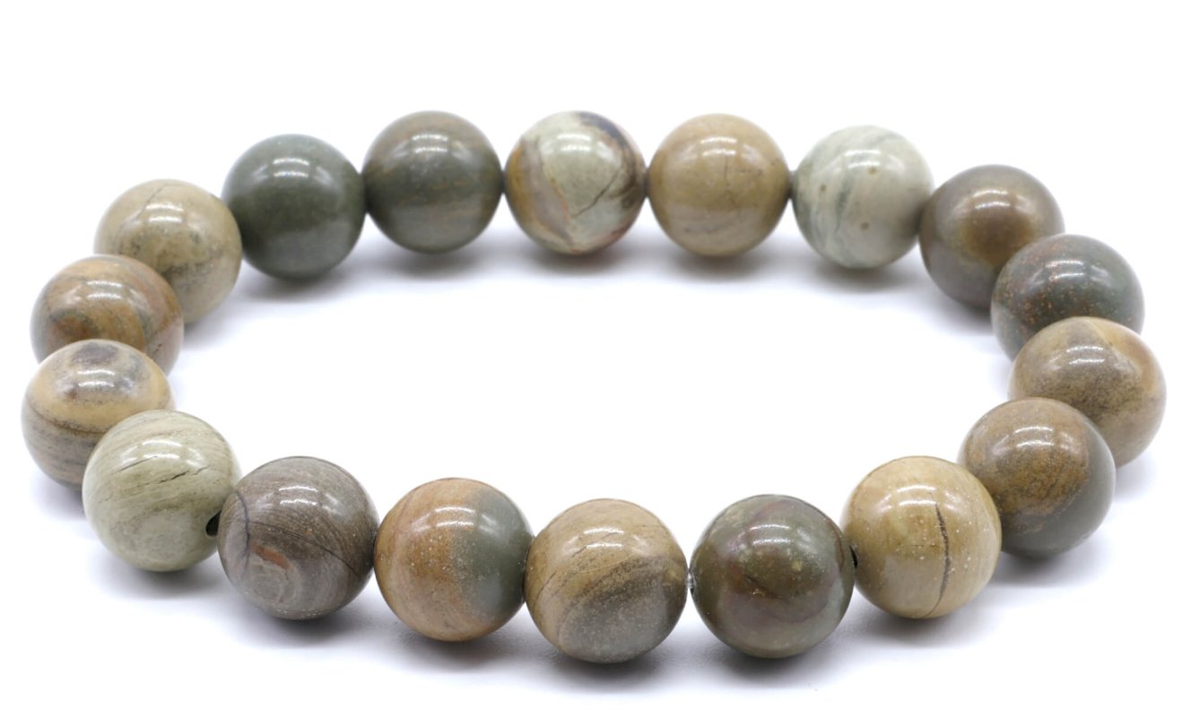 Bracelet Jaspe Feuille d'Argent perles 10mm