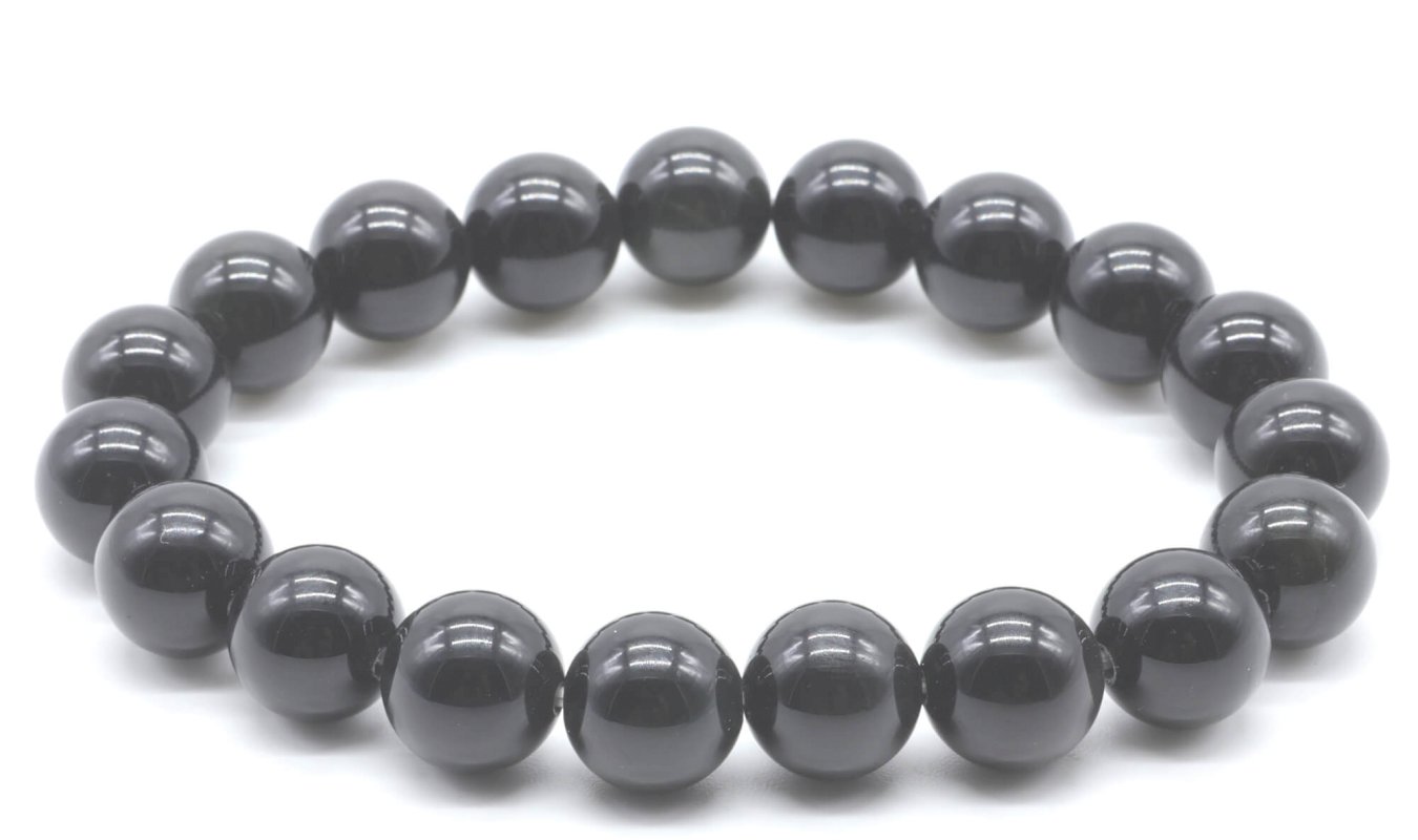 Bracelet Obsidienne Noire Dorée perles 10mm