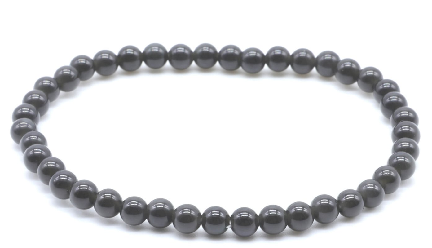 Bracelet Obsidienne Noire Dorée perles 4mm