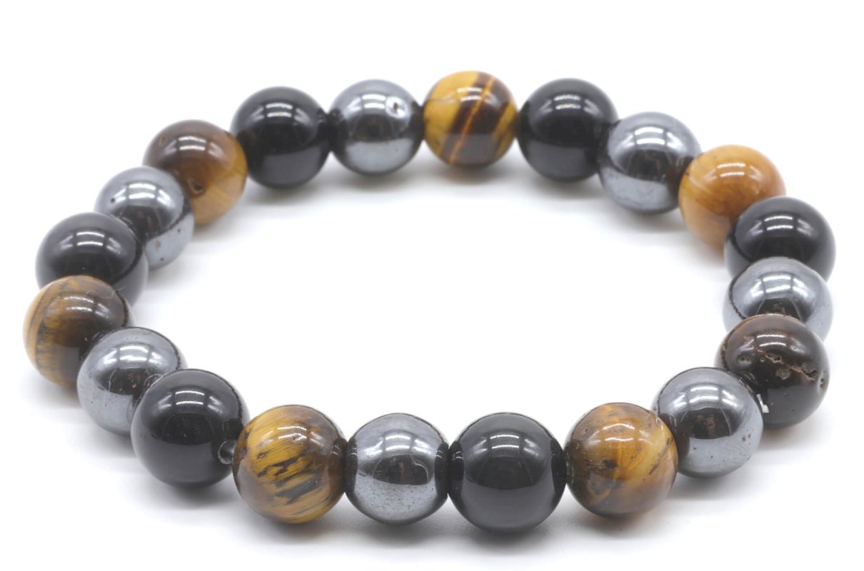 Bracelet Protection Obsidienne Noire, Hematite, Oeil de Tigre perles 10mm