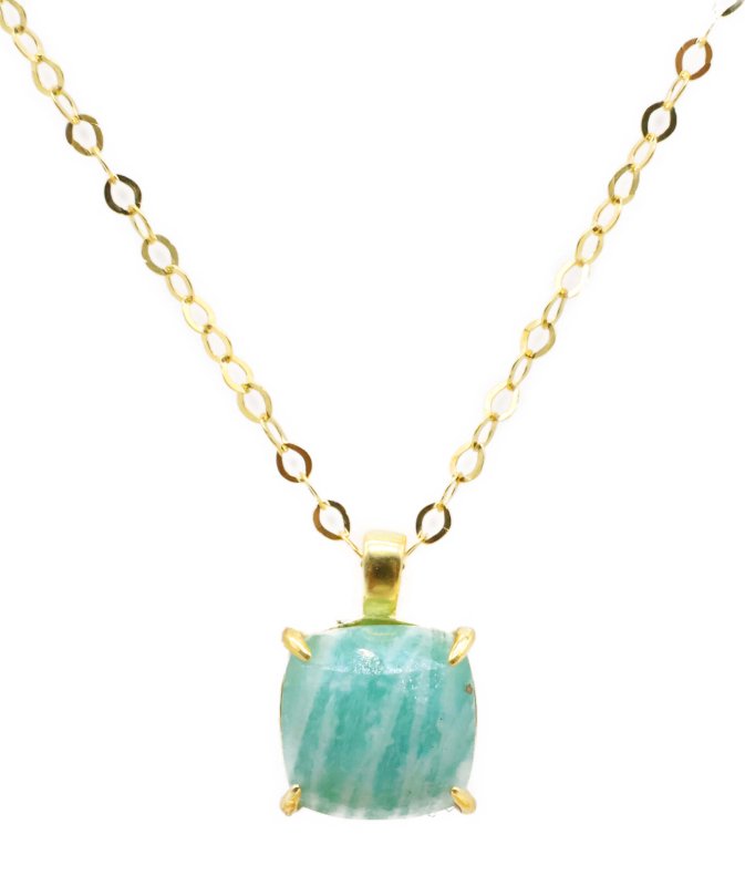 Collier en Argent 925 plaqué Or serti d'une Amazonite qualité extra.