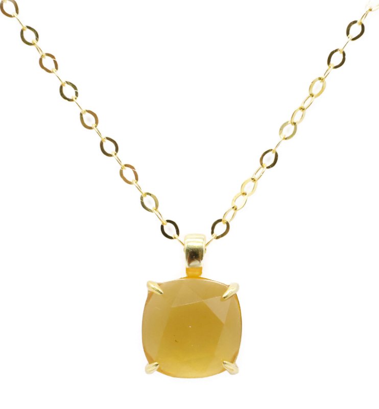 Collier en Argent 925 plaqué Or serti d'un Quartz Citrin qualité extra.
