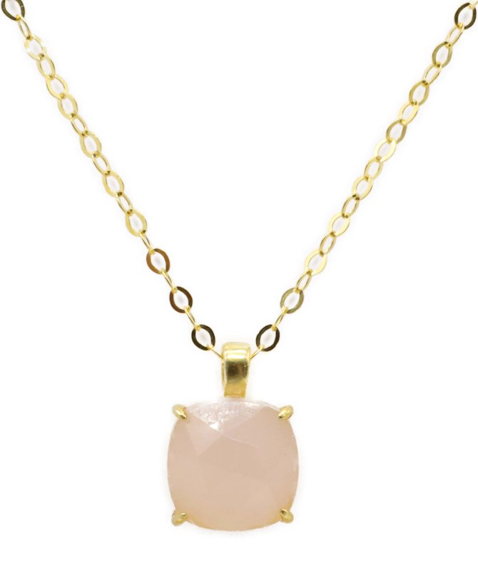 Collier en Argent 925 plaqué Or serti d'un Quartz Rose qualité extra.