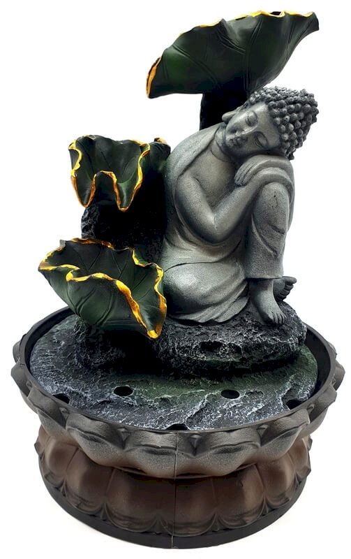 Fontaine Résine Bouddha Couché sur Genou & Cascade 28cm