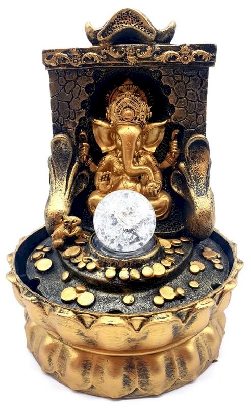Fontaine Résine Ganesh Doré sur Autel 29cm