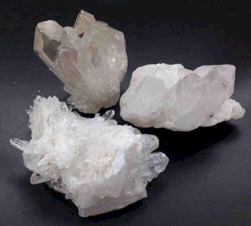 Amas de cristaux de roche sur druses cristalisées, adaptées au rechargement des minéraux.