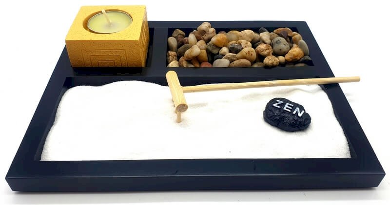 Jardin zen en résine pour méditation, relaxation et décoration d'intérieur.