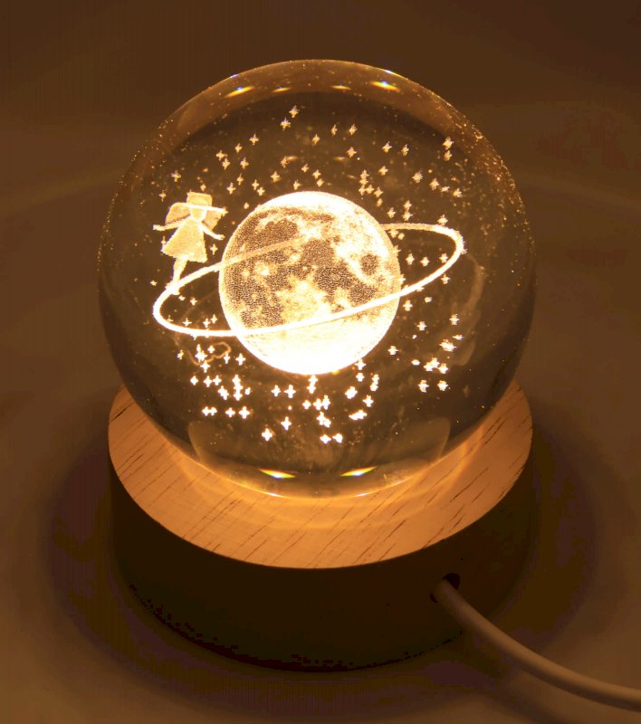 Veilleuse d'ambiance à lumière jaune gravée à l'intérieur.