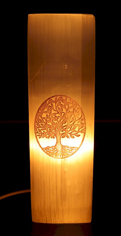 Lampe Sélénite Rectangle Gravée 25cm - Arbre de Vie