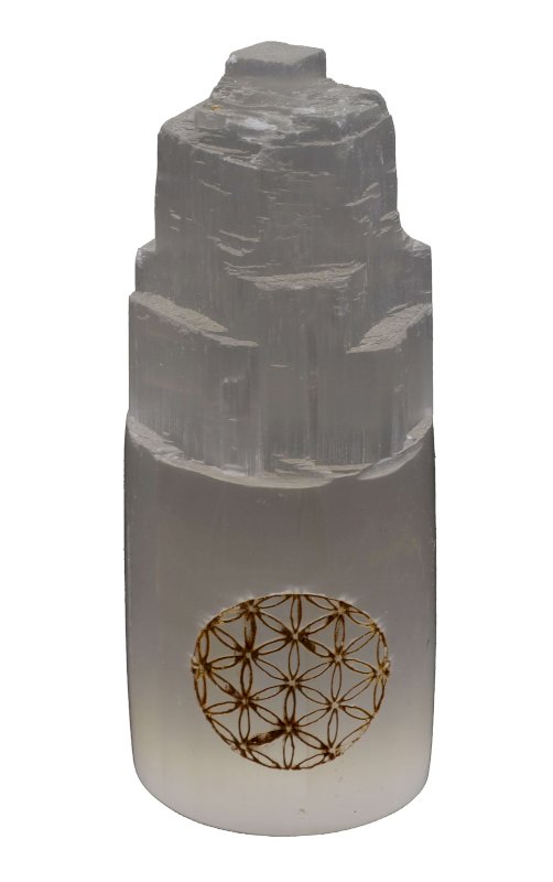 Monolithe Sélénite gravé 10cm - Fleur de Vie