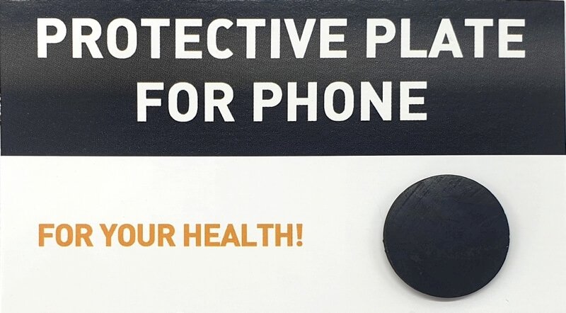 Plaque auto-adhésive pour téléphone. Protège l'utilisateur contre les champs électro-magnétiques.