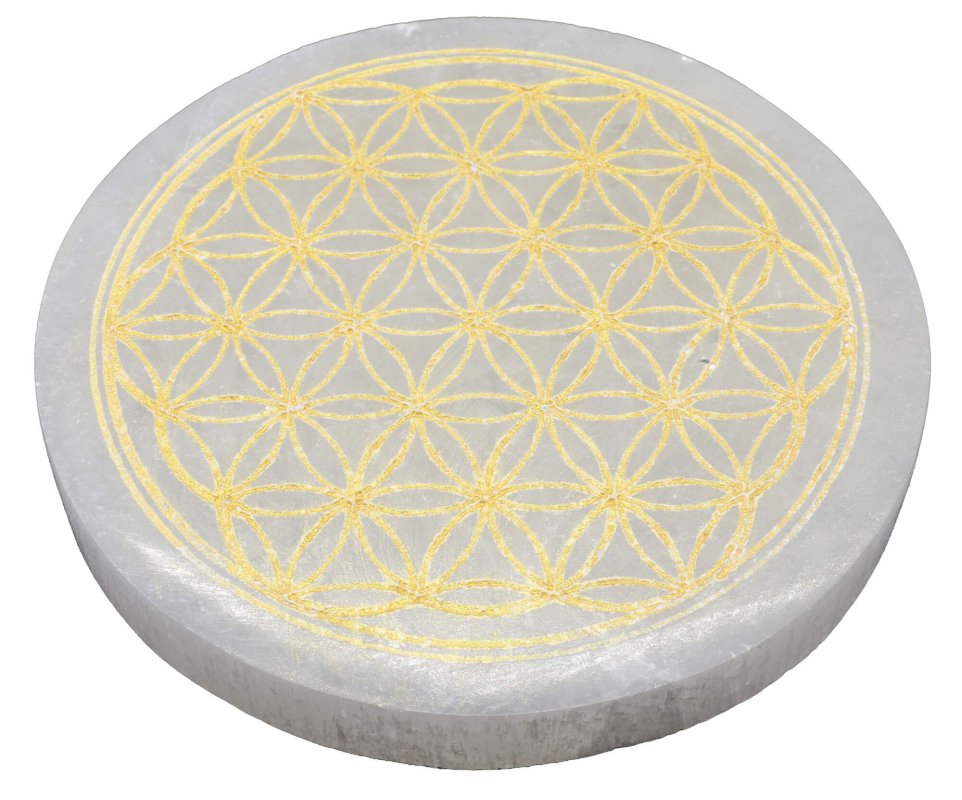 Plaque Sélénite Fleur de Vie Dorée 10cm